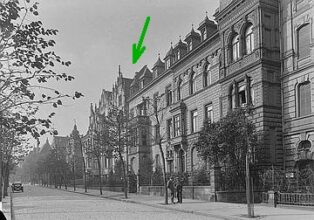 Helene Dukas steht als Zweite von links neben ihrem Schwager Max Schriesheimer. Bild: © Privatarchiv Familie DukasWohnhaus der Familie Goldschmitt in der Rathenaustraße 29 (früher Festhausstraße) in Worms im Jahr 1913. Die Familie zog 1922 dort ein.
