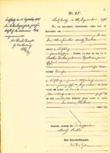 Randbemerkung links oben: "Sulzburg, den 13. Dezember 1938. Die Nebenbezeichnete hat zusätzlich den Vornamen Sara angenommen." Damit wird verschleiert, dass alle Jüdinnen zwangsweise den Vornamen Sara tragen mussten. Bild: Standesamtsregister Sulzburg © Stadt SulzburgJüdischer Friedhof Sulzburg, in der linken Bildhälfte die Grabsteine von Moritz und Bertha Dukas
