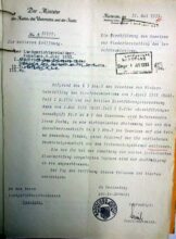 Irene Fuchs, Entlassungsurkunde aus dem Staatsdienst von 1933, wegen "nichtarischer Abstammung"