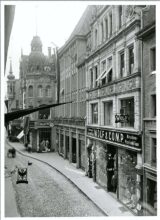 Die Rosgartenstraße in den 30er-Jahren mit den Geschäften Spiegel&Wolf (Nr. 16 im Hintergrund) und Wolf&Co. (Nr. 12 vorn)