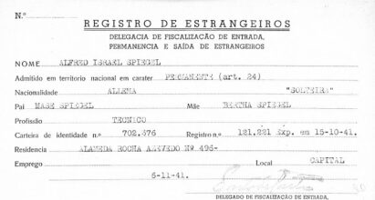 Wenige Monate nach seiner Ankunft in Sao Paulo, im November 1941, erhielt Alfred Spiegel die offizielle Bestätigung seiner Einbürgerung im Bundesstaat Sao Paulo.