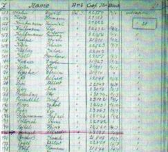 Quelle: Rosgartenmuseum KonstanzAusschnitt aus dem Lagerbuch des KZ Dachau, Eintrag des Zugangs von Alfred Spiegel mit der Häftlingsnummer 23198