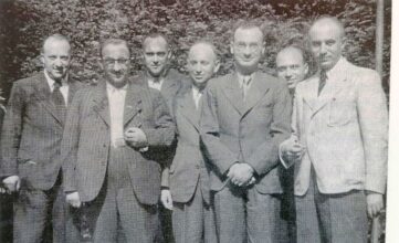 Quelle: ITS ArolsenAbschiedsfoto Konstanzer Freunde vor der Deportation und Auswanderung im September 1940 v.l.n.r.: Alfred SPIEGEL, Siegfried Rothschild, Willy Rosenfeld, Ernst Hilb, Hugo Schriesheimer, Dagobert Guggenheim, Kurt Wolf