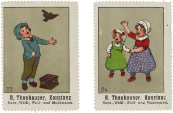 Bildquelle: Zwei Reklamemarken des Modewarengeschäfts H. Thanhauser, Konstanz ca. 1910 - 1914, Papier; Jüdisches Museum Berlin, Inv.-Nr. 2015/1313/0, Schenkung von Peter-Hannes Lehmann, Foto: Roman MärzHans Thanhauser Einwohnermeldeamt Konstanz: "Konzentrationslager Dachau, gestorben"