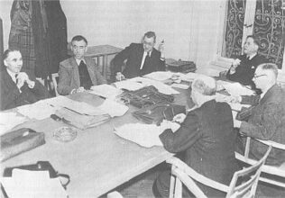 Hans Venedey (2. v. links) 1945 als hessischer Innenminister