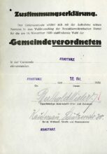 Zustimmungserklärung von Berthold WIELER, sich als Kandidat der Sozialdemokratischen Partei für die Gemeindeverordneten-Wahl vom 16.11.1930 aufstellen zu lassen, bei der er dann auch gewählt wurde