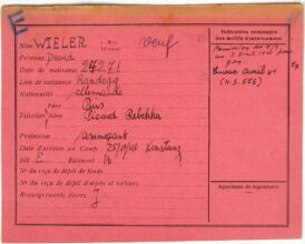v.l.n.r.: Adolf, Clara, Michael, Hermann, Hedwig, Marie, David, Julius. Quelle: Privatarchiv Familie WielerKarteikarte David Wieler im Lager Gurs